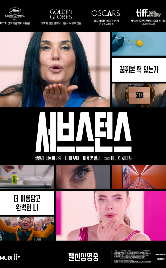 영화를 보고 나서 거울을 제대로 못 쳐다본 적이 있으신가요? 저는 최근에 《서브스턴스》를 보고 난 뒤 며칠간 제 얼굴을 똑바로 마주하지 못했습니다. 화면 속 데미 무어가 화장을 고치다 결국 데이트를 포기하는 그 장면에서, 제가 SNS용 사진을 한 시간 넘게 보정하던 모습이 겹쳐 보였기 때문입니다. 2024년 칸 영화제 각본상 수상작이자 아카데미 분장상을 받은 이 영화는, 단순한 호러 스릴러가 아니라 우리 사회가 강요하는 아름다움의 폭력성을 적나라하게 해부한 작품입니다.